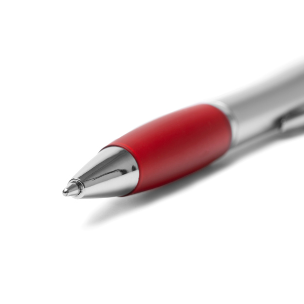 Esferográfica com spinner anti-stress. Corpo em ABS e clipe metálico. Pega de cor confortável. Ponteiro tátil e acabamento metálico. Tinta de cor azul.