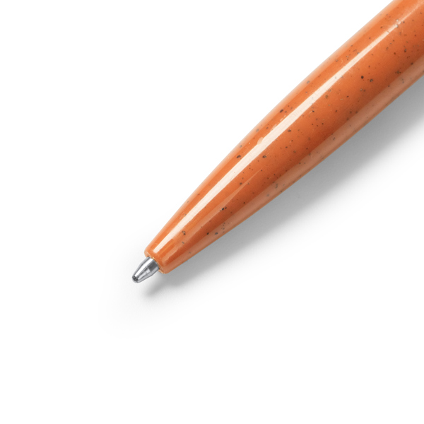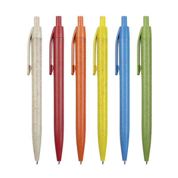 Caneta com botão realizada em fibra de trigo e ABS. Tinta azul.
