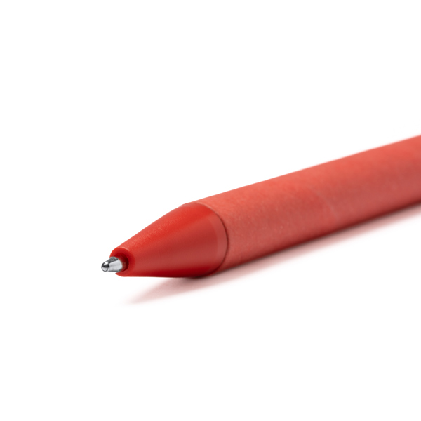Caneta de botão de pressão com corpo em cartão reciclado, ponta e clipe em ABS reciclado. Tinta de cor azul.