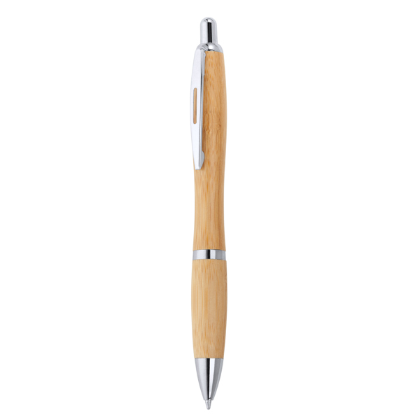 Caneta com botão feita de bambu. Carga Jumbo de tinta azul.