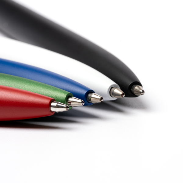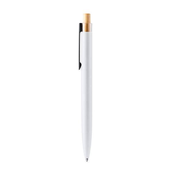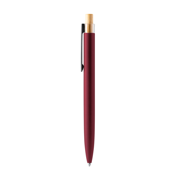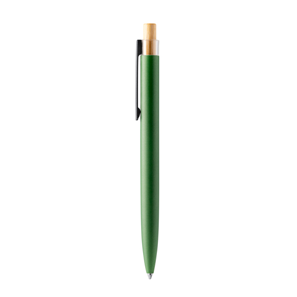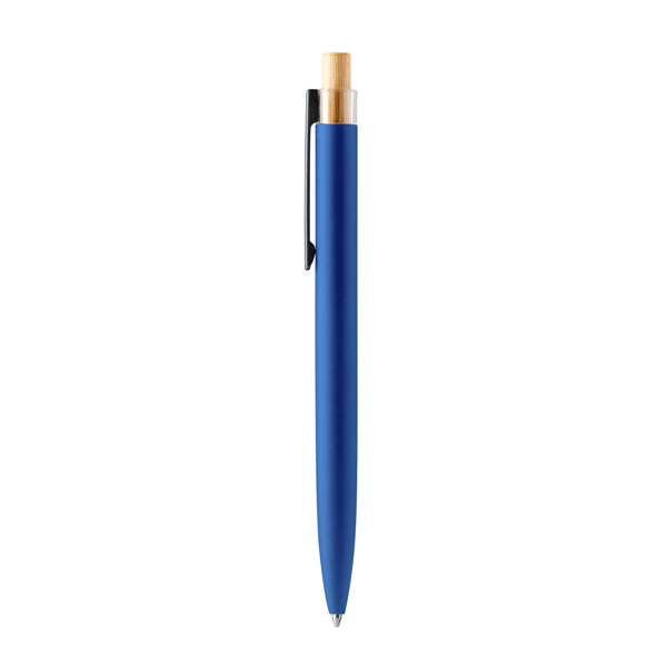 Caneta única com botão de pressão em bambu e corpo em alumínio reciclado. Carga jumbo de tinta azul