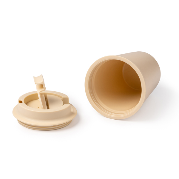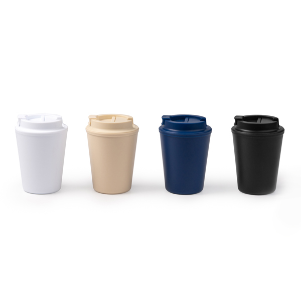 Copo com corpo e tampa em PP, com tampa de enroscar e bico para beber facilmente. Com uma capacidade de 300 ml, é perfeito para bebidas quentes ou frias. O seu design compacto e funcional torna-a ideal para levar para qualquer lado, oferecendo comodidade e praticidade.