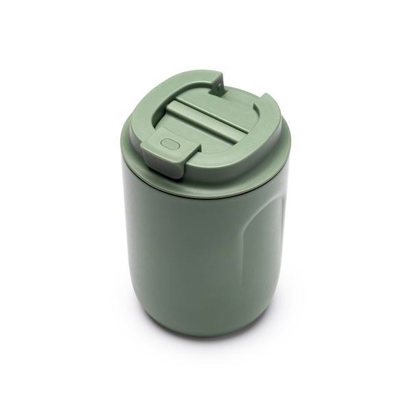 Copo térmico de revestimento duplo de aço inoxidável 304. Tampa PP de rosca antivazamento e prática tampa para beber. Capacidade: 250 ml.