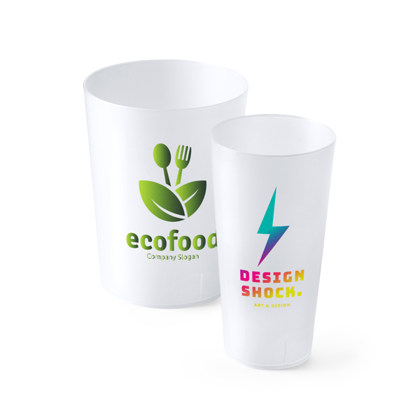 Copo flexível reutilizável em PP com capacidade para 900 ml. Acabamento translúcido.