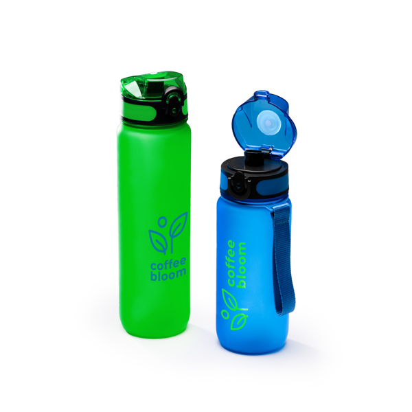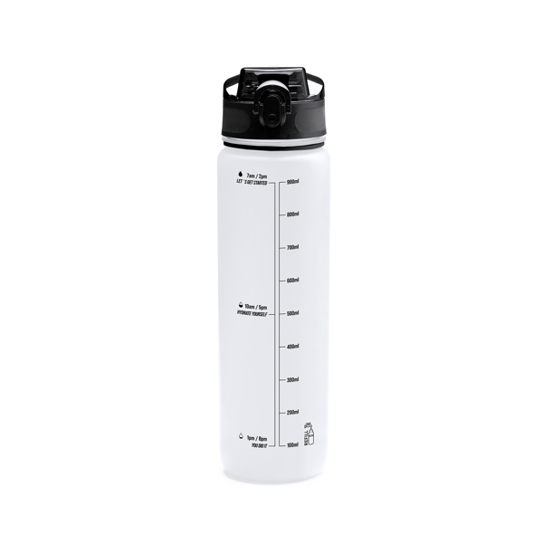 A garrafa PCTG apresenta um design de corpo translúcido com tampa a condizer, complementado por uma prática pega de transporte. Apresenta recomendações de hidratação e um indicador de capacidade, ideal para manter uma ingestão adequada de líquidos. Com uma capacidade generosa de 1 litro, é perfeita para se manter hidratada em qualquer situação, combinando funcionalidade e estilo num recipiente durável e prático.