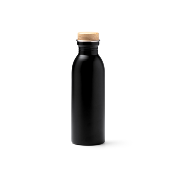 Garrafa em aço inoxidável 304 reciclado com acabamento mate e tampa em bambu. Capacidade para 650 ml. Apresentação em caixa de design ecológico.