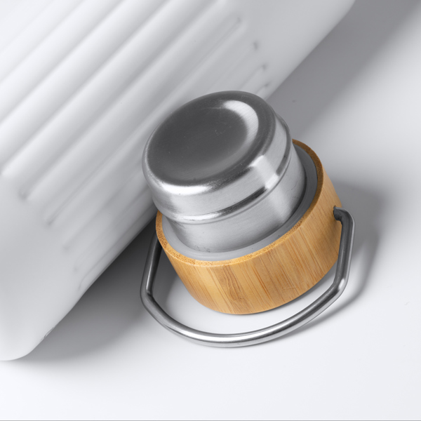 Material: Aço inoxidável reciclado e tampa de bambu.