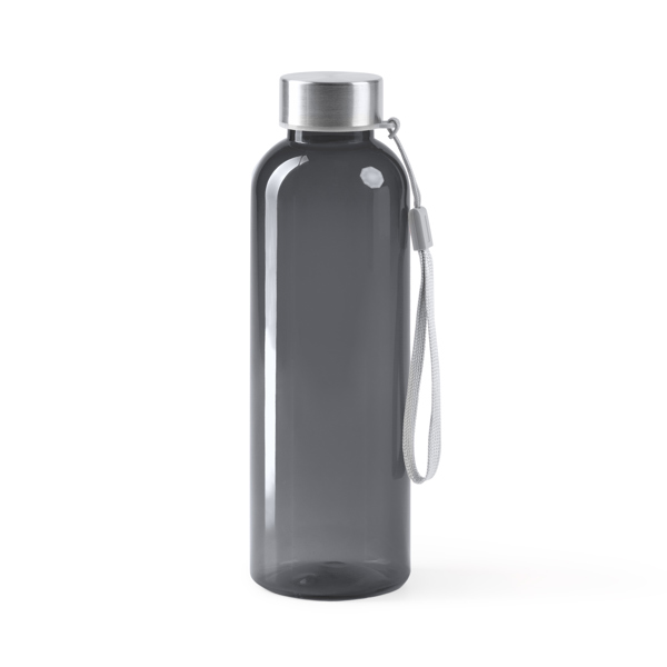 Garrafa RPET com corpo de cor translúcida. Capacidade 600 ml. Alça de transporte incluída. Uma garrafa com um design diferente, sem esquecer o cuidado com o planeta.