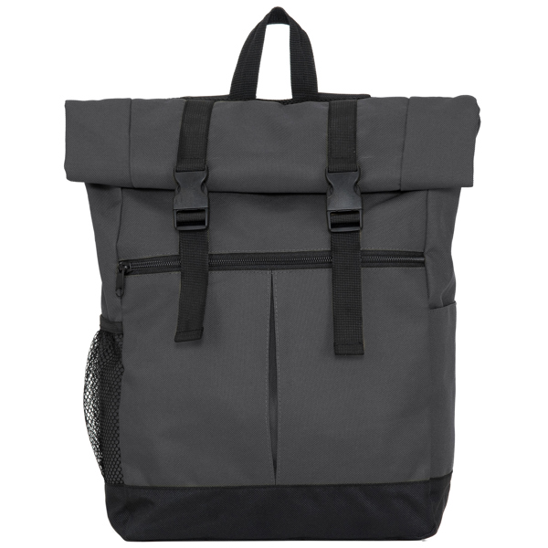Mochila multifunções em poliéster 900D. Compartimento principal espaçoso dobrável com zíper e botões de pressão. Bolsos laterais. Alças para os ombros e costas acolchoadas.