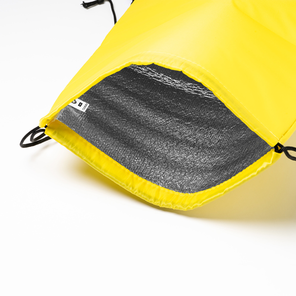 Mochila refrigeradora com cordões e interior em alumínio isolado. Exterior em poliéster 210D.