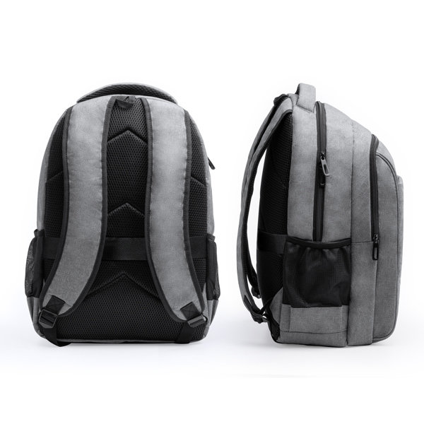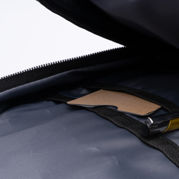 Mochila executiva RPET 300D em poliéster reciclado. O corpo e o bolso interior principal são almofadados para proporcionar uma proteção ótima para computadores portáteis ou tablets de 13″. As pegas e as costas almofadadas proporcionam conforto durante todo o dia, mesmo durante o transporte de cargas pesadas. A correia para trolley permite prender a mochila a uma mala com rodas, facilitando a sua deslocação em aeroportos e estações.