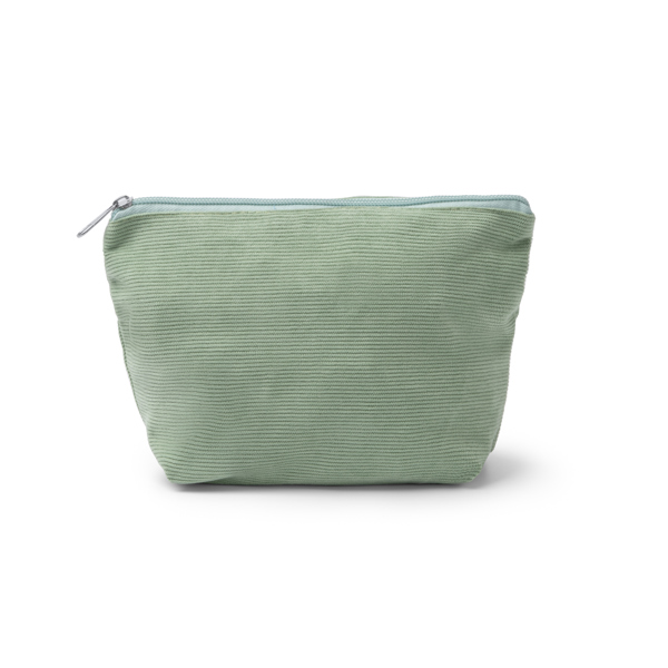 Necessaire em tecido de veludo cotelê, que combina elegância e praticidade, ideal para organizar os seus pertences.