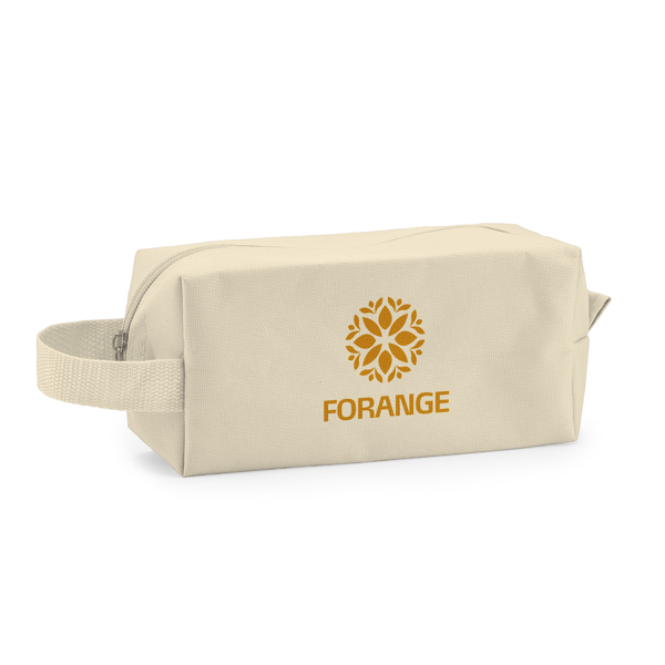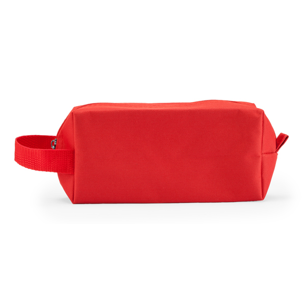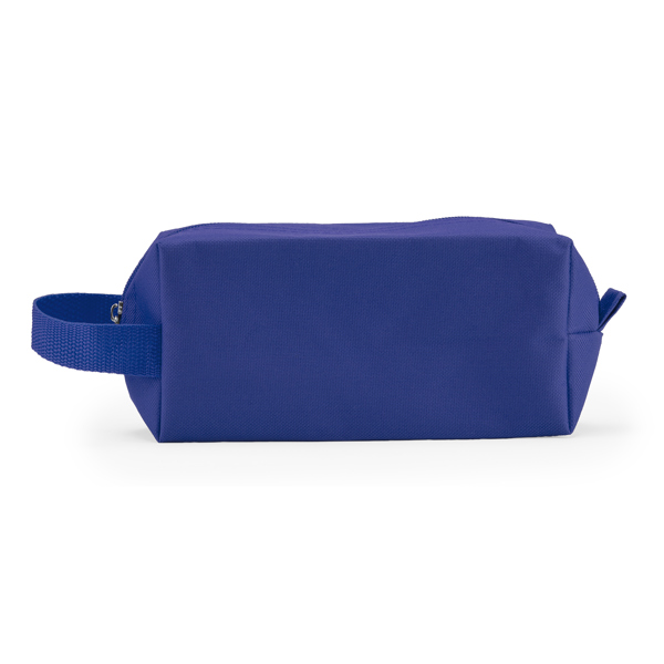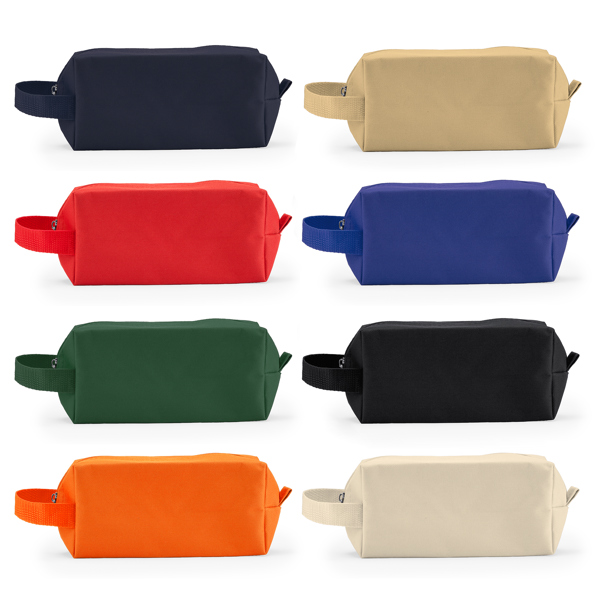 Necessaire em poliéster 600D com fecho de correr e alça de transporte conveniente.