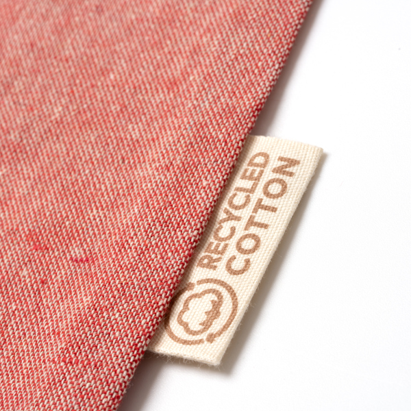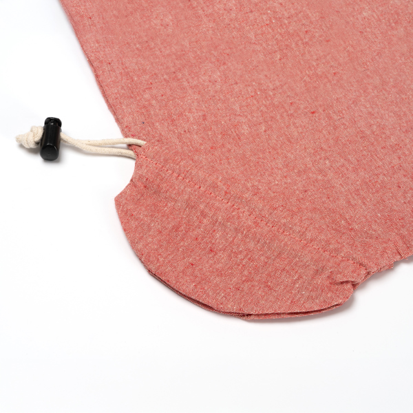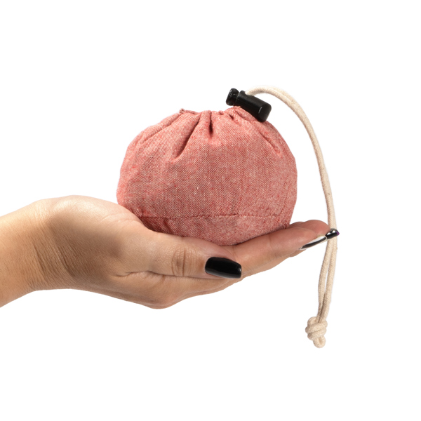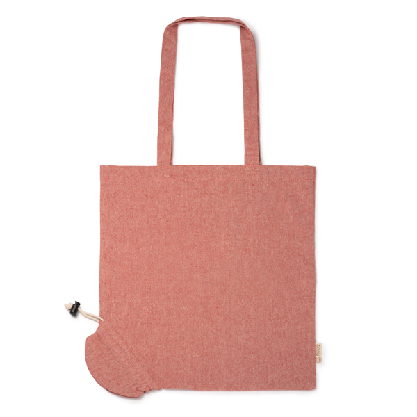 Saco dobrável em algodão reciclado de 120 g/m² a cores, com alças de 70 cm de comprimento e cordão para dobrar de forma ajustável.