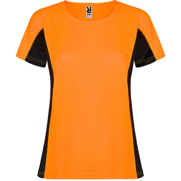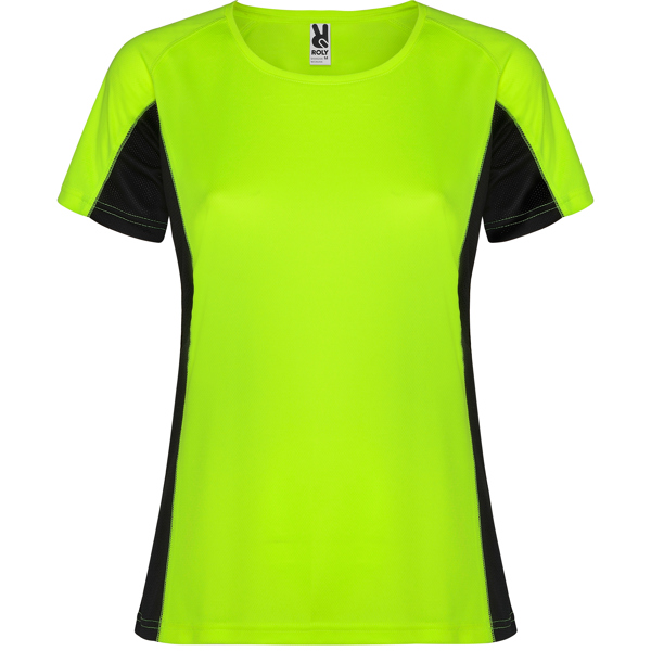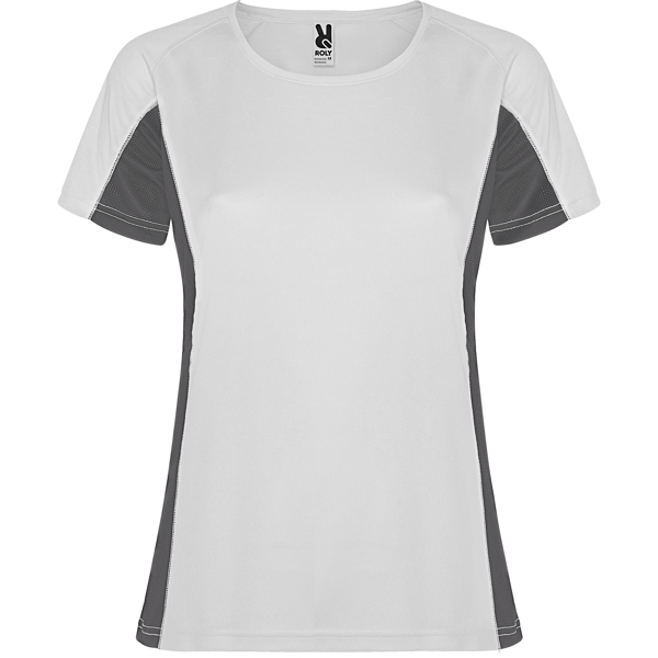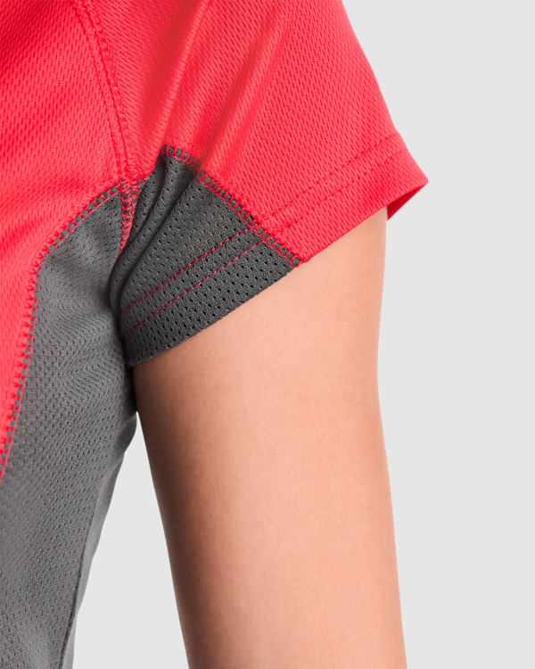 T-shirt técnica bicolor de manga curta respirável. Painéis laterais em tecido microperfurado. Decote redondo tom sobre tom e fita na gola.
